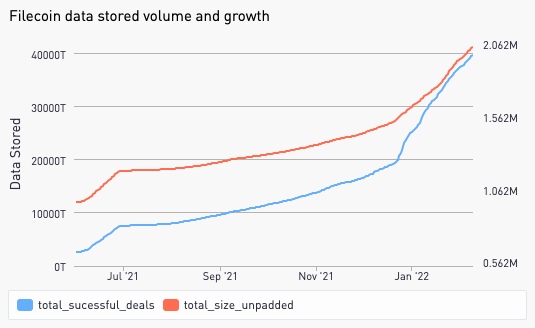 The growth of successful storage deals on the Filecoin Network since July 2021 (source: Protocol Labs)
