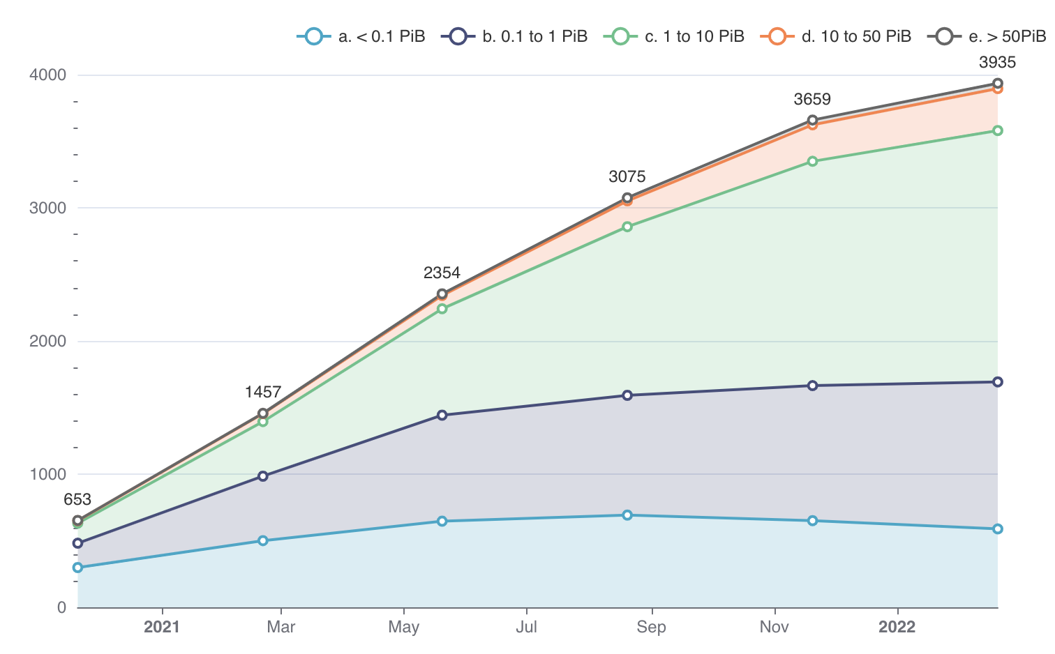 A look at the SP ecosystem in terms of the amount of Storage Power contributed in PiB (source: Protocol Labs)