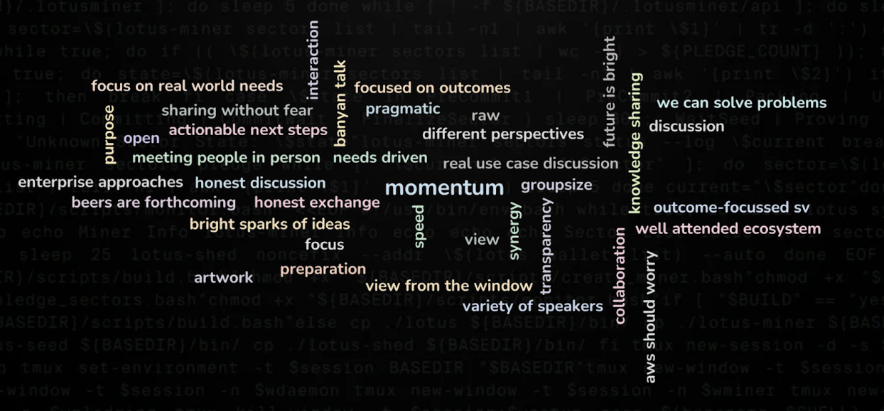 Ecosystem members leading the growth in enterprise data onboarding to Filecoin shared the opportunities and challenges they’re experiencing in the field, and attendees collectively brainstormed solutions and next steps. Community members from Banyan, Seal Storage, Internet Archive, Storj, SteelDome, and Protocol Labs covered topics across enterprise requirements, approaches to durability and availability, evolutions in data onboarding workflows, and new multi-protocol customer experiences for interacting with Filecoin. It was a highly engaging and productive few days in Iceland.