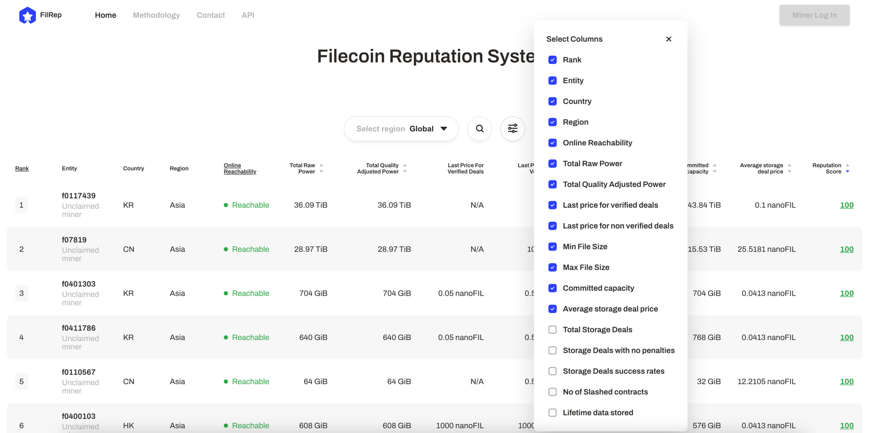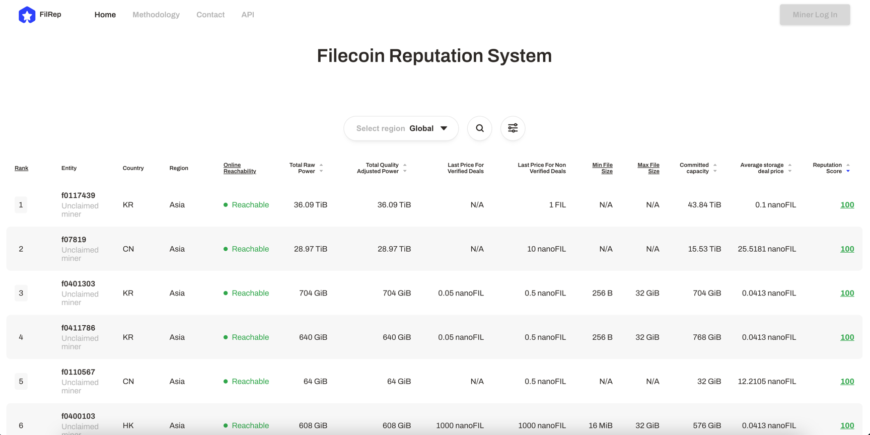 In Filrep.io’s first version, the reputation score only captures aspects related to storage deal reliability. Retrieval aspects of the system will be included in future versions.
