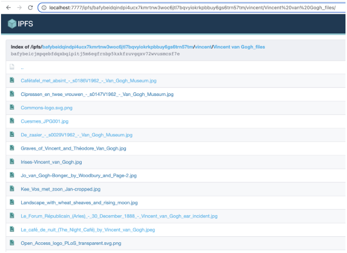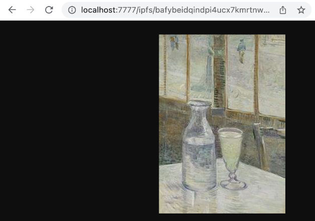 $ curl --output /tmp/museum.jpg "http://localhost:7777/ipfs/bafybeidqindpi4ucx7kmrtnw3woc6jtl7bqvyiokrkpbbuy6gs6trn57tm/vincent/Vincent%20van%20Gogh_files/Caf%C3%A9tafel_met_absint_-_s0186V1962_-_Van_Gogh_Museum.jpg**?format=raw**"
